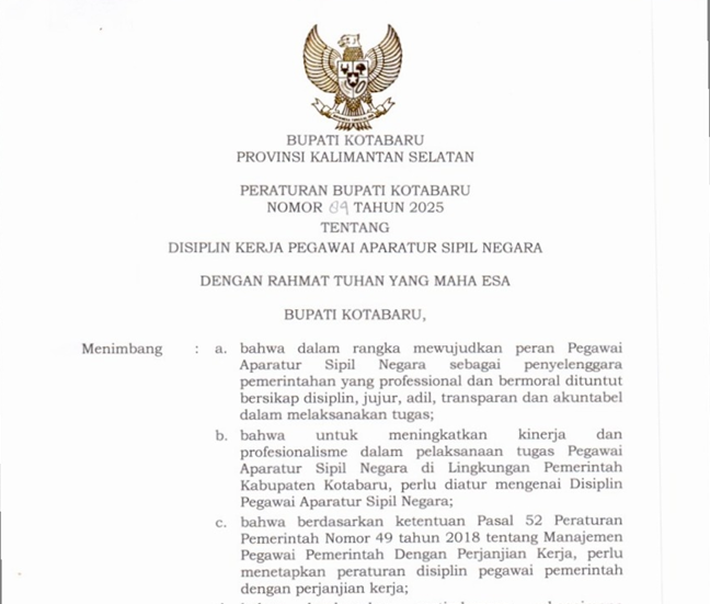 Peraturan Bupati Kotabaru Nomor 84 Tahun 2025 tentang Disiplin Kerja Pegawai Aparatur Sipil Negara