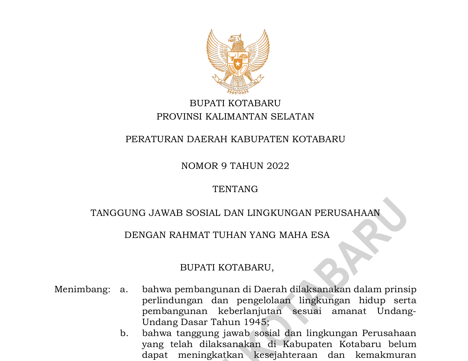 Peraturan Daerah Kabupaten Kotabaru Nomor 9 Tahun 2022 tentang Tanggung Jawab Sosial dan Lingkungan Perusahaan